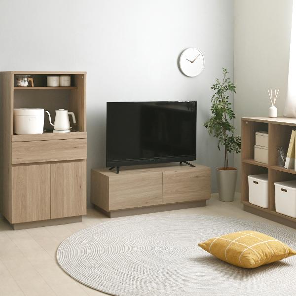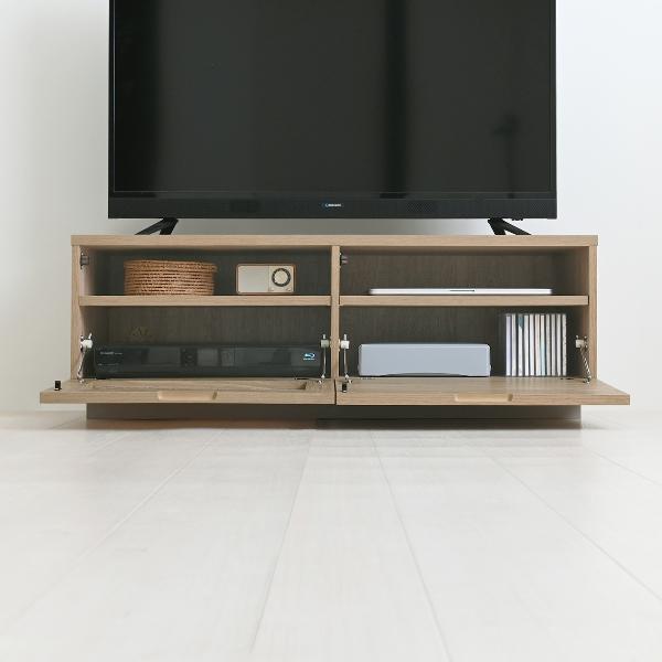 赤外線も通る仕様でAV機器も仕舞えるので、テレビ周りもすっきり。