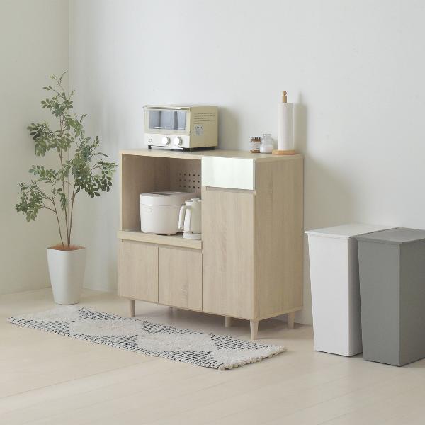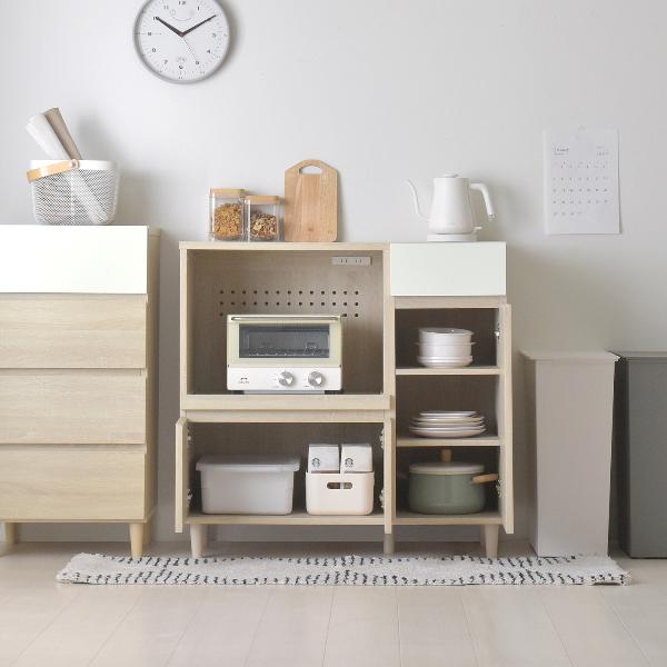 | 素材・成分 | [本体] プリント紙化粧繊維板 [天板・スライド棚]:合成樹脂化粧繊維板 [引き出し前板]:UV塗装 [脚部]:天然木(ラッカー塗装) | |