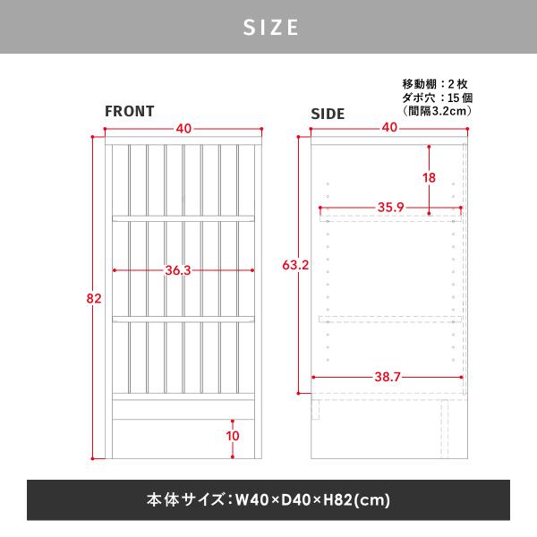 幅40cm×高さ82cmでリビングでも寝室でもさりげなく馴染みながら収納力を底上げ。
