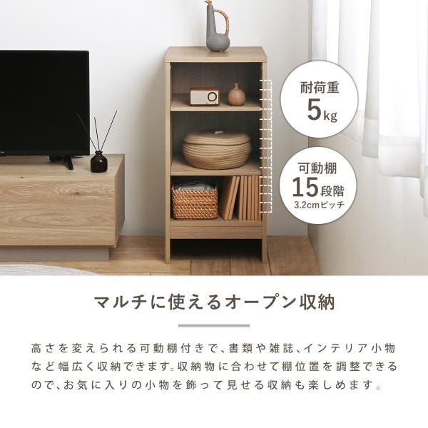 15段階の可動棚でスパイスボトルやリモコンから畳んだTシャツ、バッグまでマルチに収納。暮らしの中でサッと出し入れしたい物たちをまるっと引き受けます。