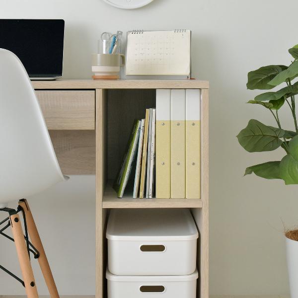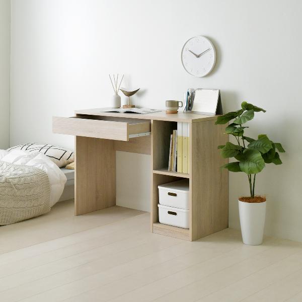 筆記用具などの文房具からA4サイズのファイルまでまとめてしまえる3ヵ所の収納スペース付き。コンパクトでも理想のワークスペースおお作りいただけます。| 商品番号 | [オークナチュラル] KO73-100DS-IV | |
