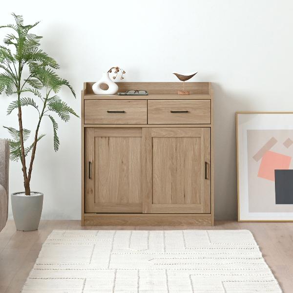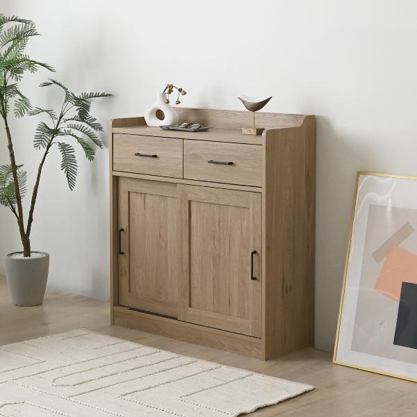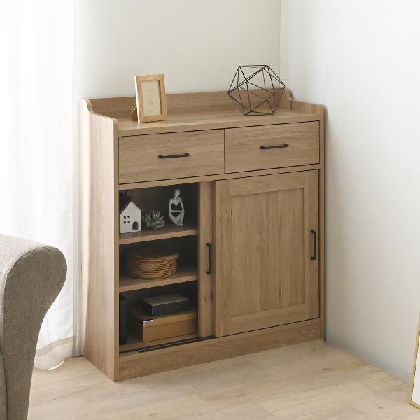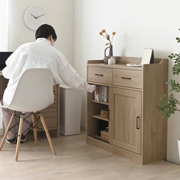 一人暮らしのお部屋でも使いやすい幅84cmで、生活感が出やすい小物も扉の中に隠して、すっきりとした空間を演出できます。扉内には移動棚が2枚ついており、収納物の大きさによって高さを調節できるのも魅力の一つです。