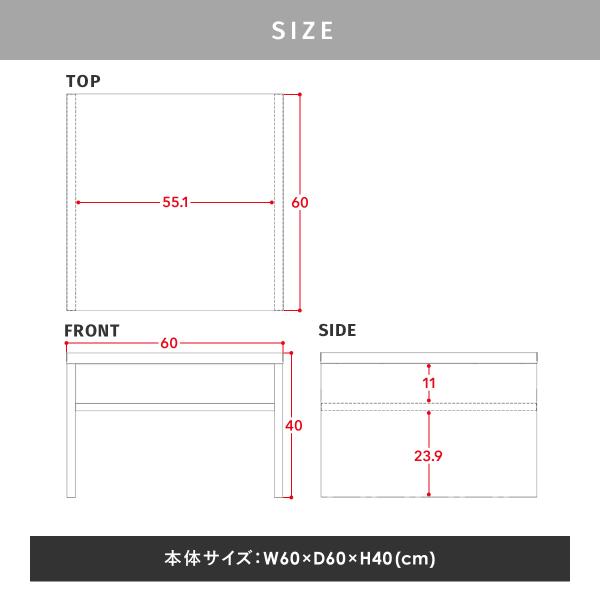 | サイズ・容量 | ■本体サイズ:W600×D600×H400mm■商品重量:12.65kg■梱包サイズ:W700×D660×H115mm■梱包重量:14.25kg★耐荷重:[天板]30kg[棚板]3kg | |