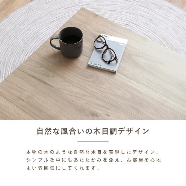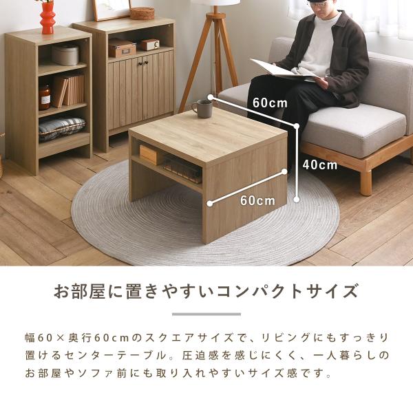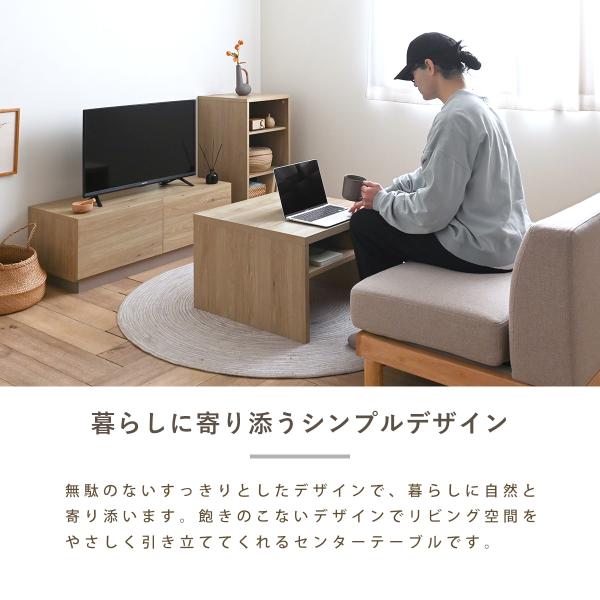 リビングにもすっきり置けるセンターテーブルは圧迫感を感じにくく、一人暮らしのお部屋やソファ前にも取り入れやすいサイズ感です。