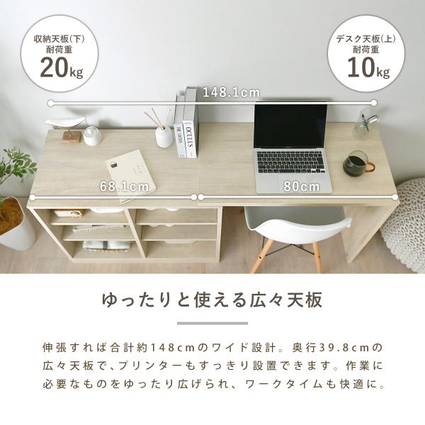 GR 収納棚付伸縮デスク(80~148cm幅)
