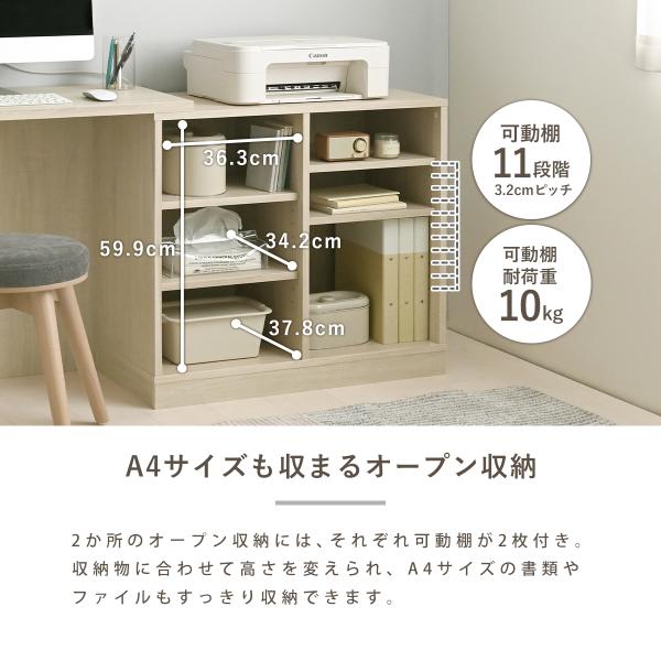天板は最大148cm。収納上を活用することで場所を取らず、作業スペースもきちんと確保。Point03大容量のオープン収納